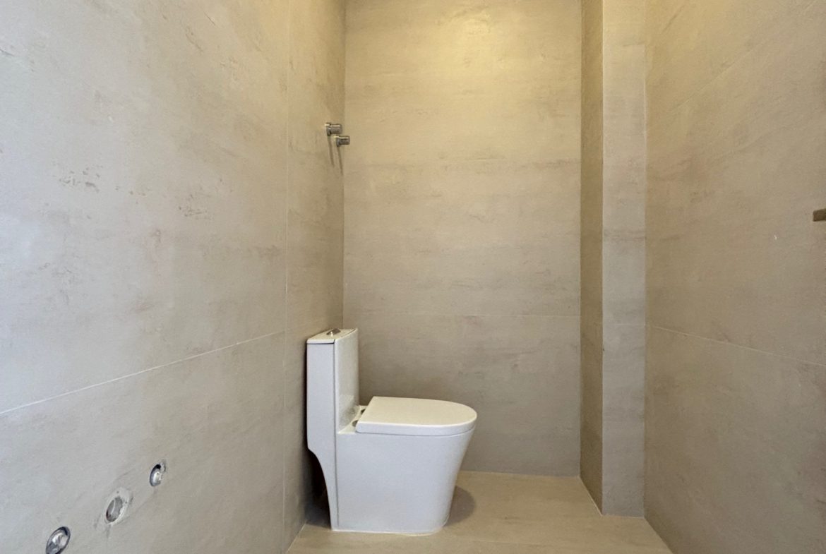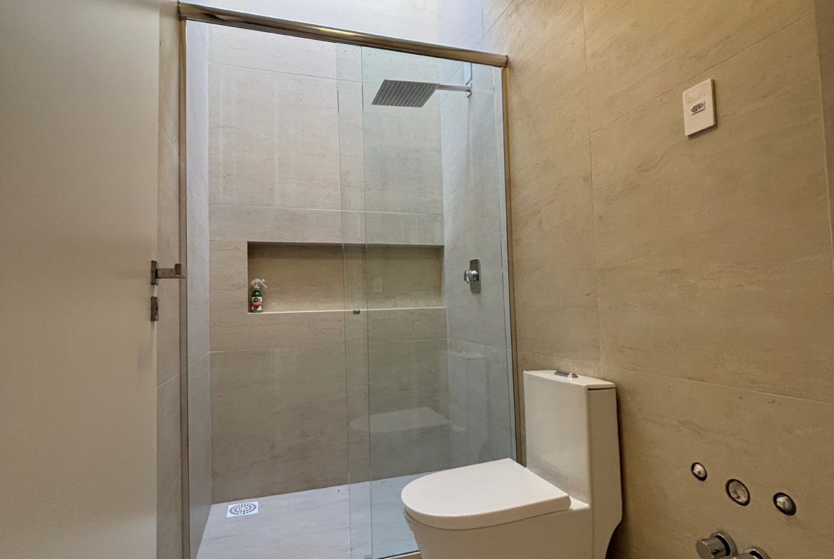 Acabamento dos banheiros em prata.