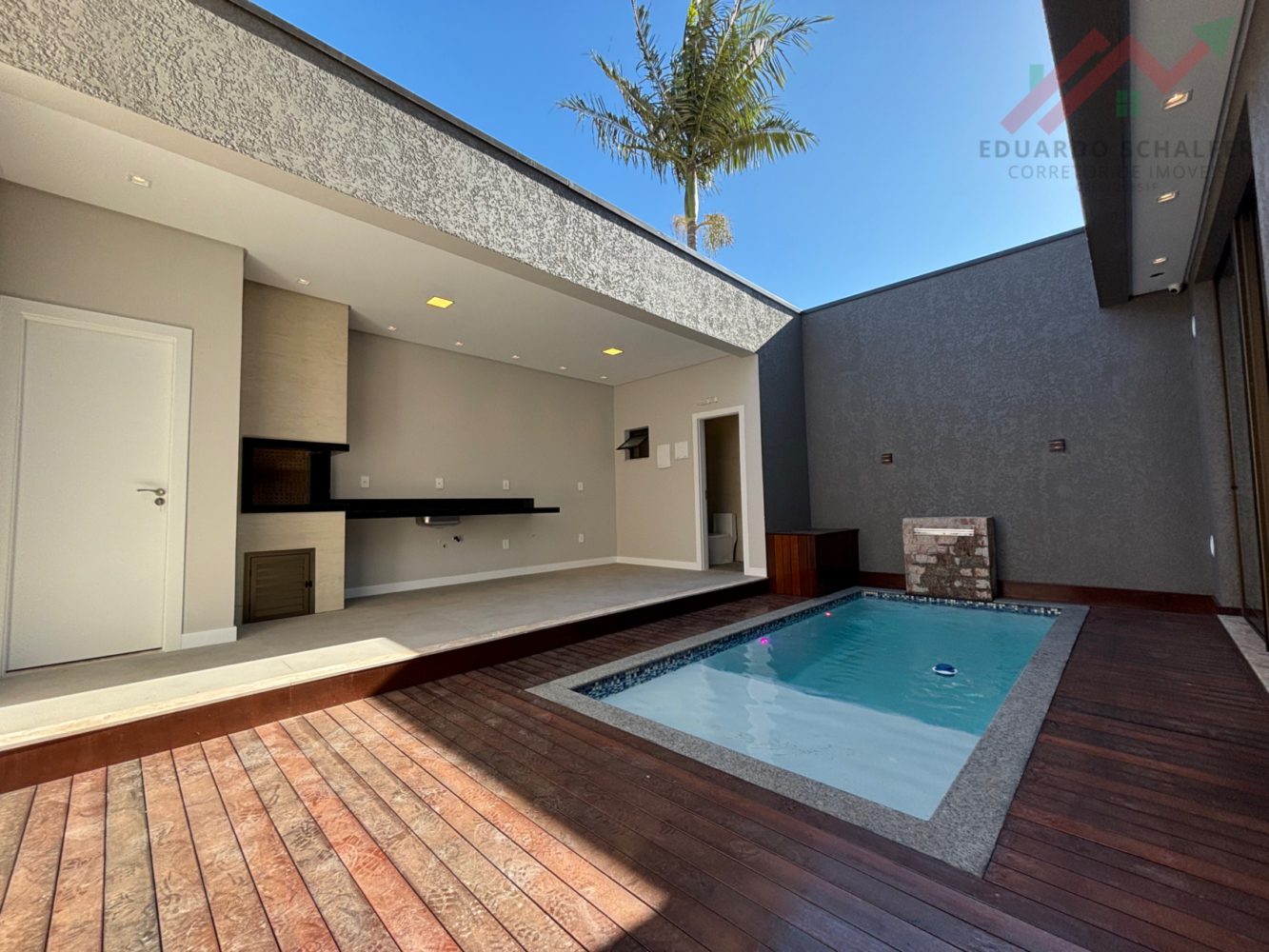 Nos fundos área gourmet com churrasqueira e piscina ;