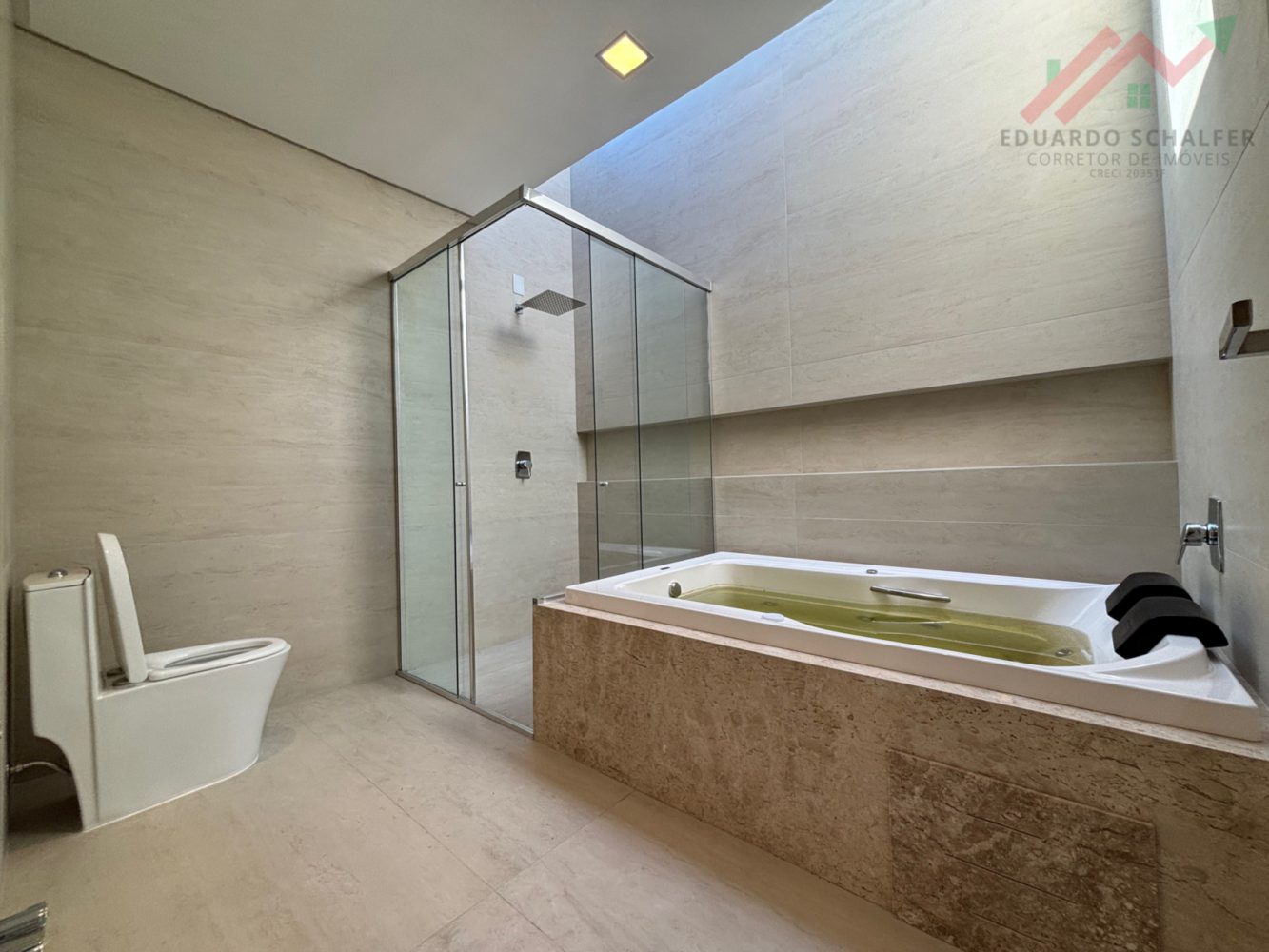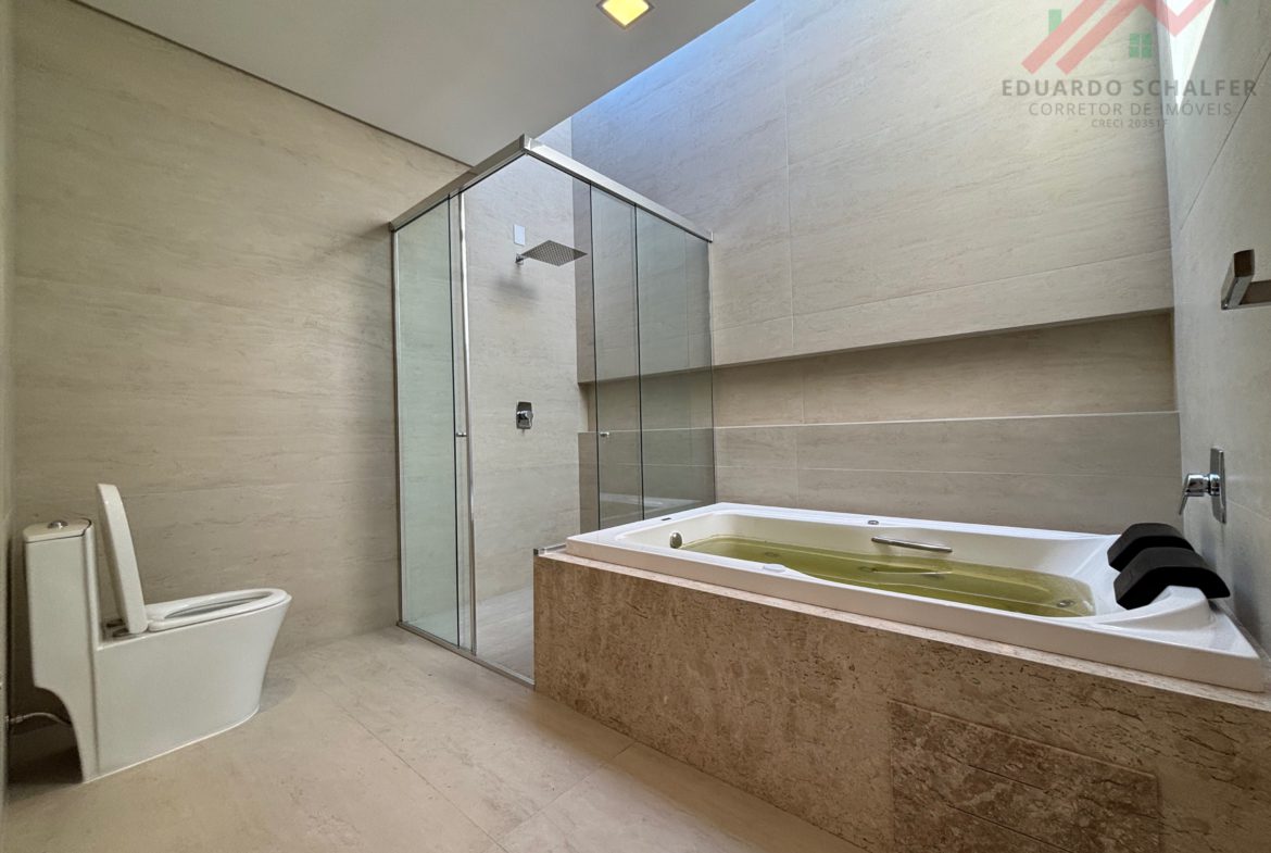 Piso superior conta com 3 suítes amplas sendo uma master com banheira de hidromassagem ;